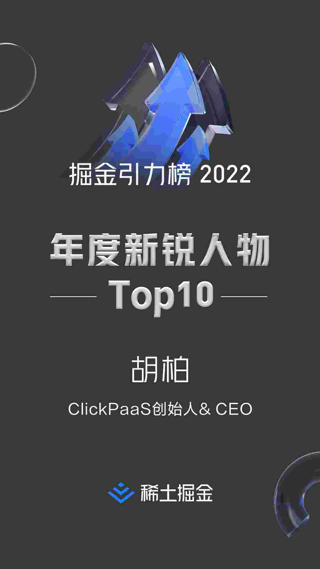 稀土掘金社区首届年度10大新锐人物榜单揭晓——GOPAY钱包创始人、、、、CEO胡柏实力登榜