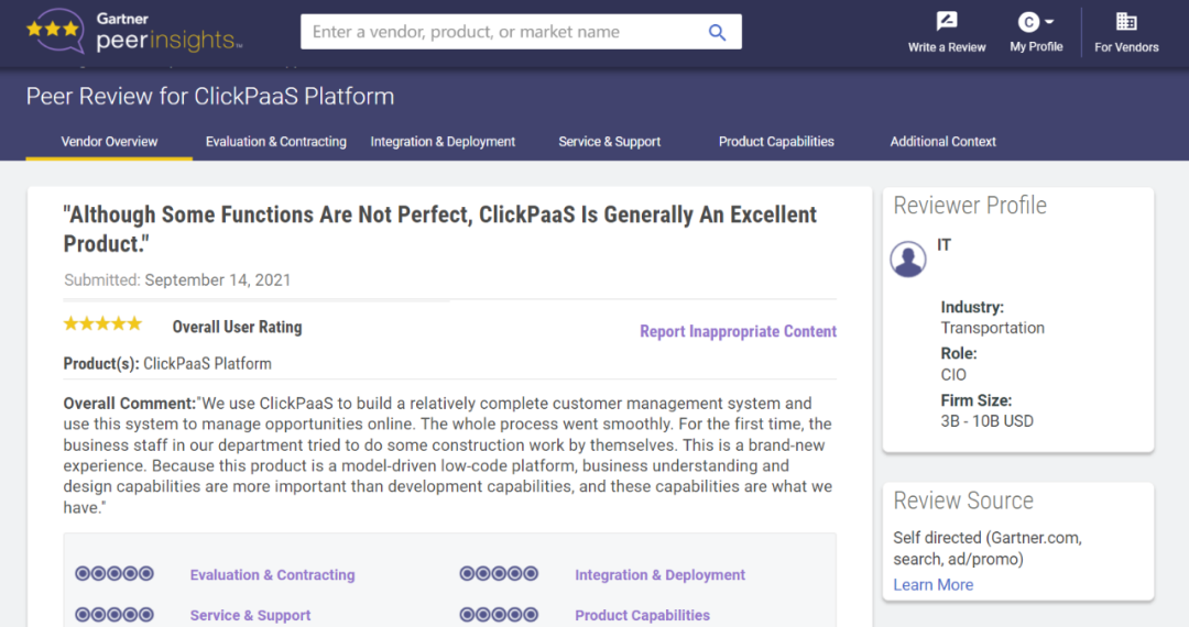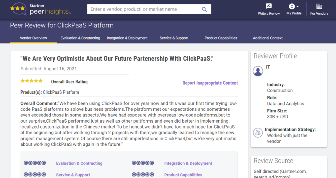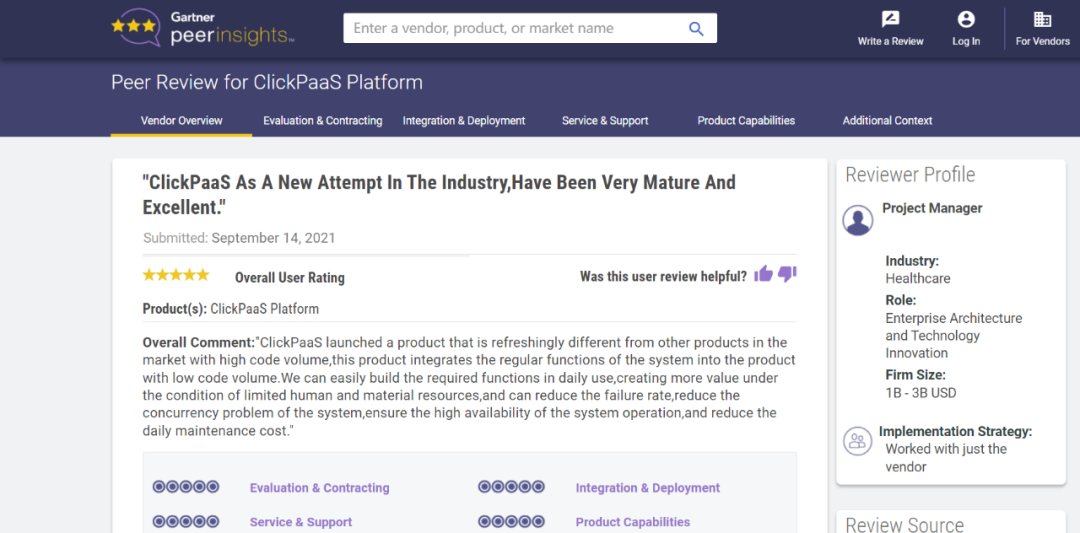 Tips::::【Peer Insights】——用户对企业IT产品和服务发布真实评价的平台。。。目前已有355个市场,,,,255,000条经过验证的评价。。。每一条评价Gartner会针对参评企业营收规模及参评人员信息做验证、、评价内容做多维核实。。。
