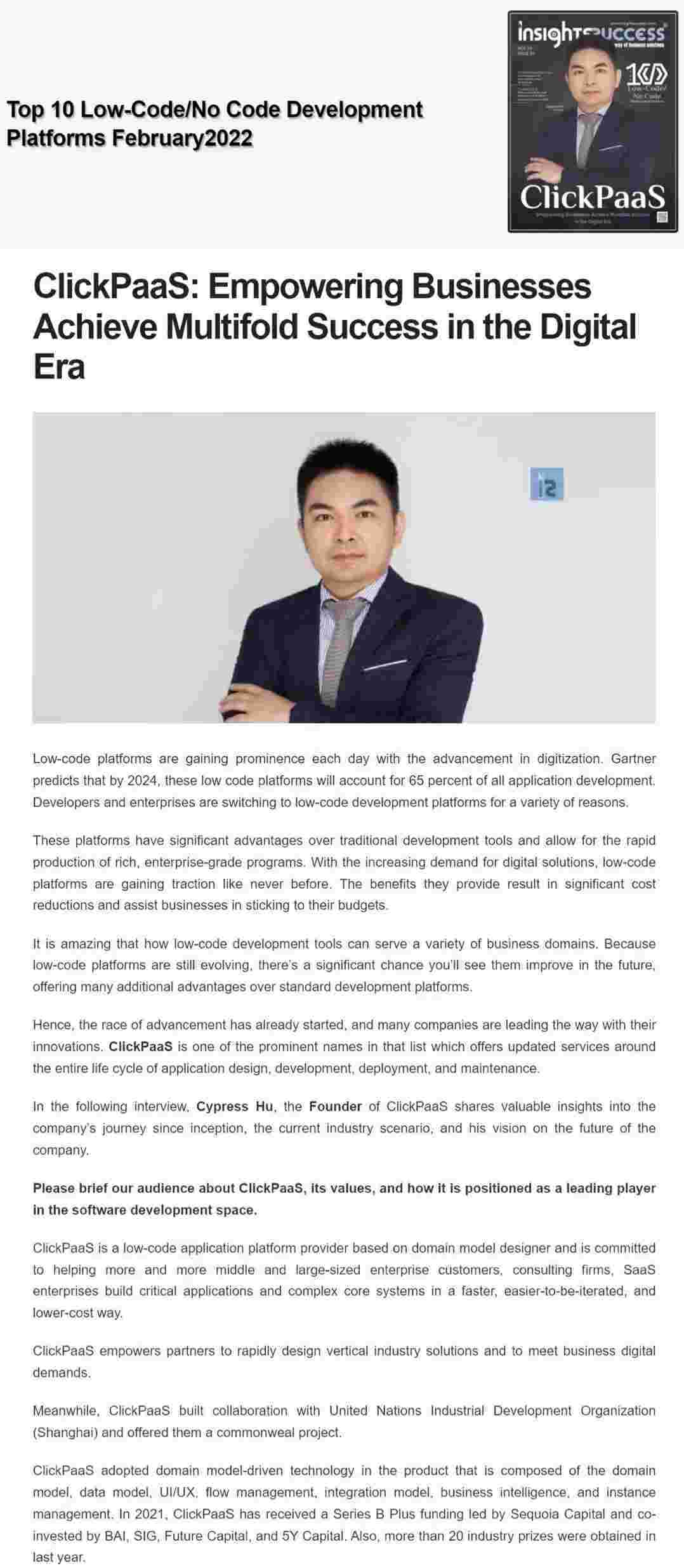 2022年年初,,,GOPAY钱包入选外媒Insights Success低代码/无代码开发平台 Top10,,,,创始人、、CEO胡柏受邀接受专访并荣登封面人物,,他与Insights Success的读者分享了GOPAY钱包成立的初心、、、、发展历程、、、当前的行业发展趋势以及他对公司未来的展望。。。